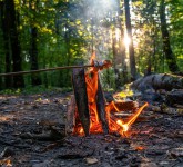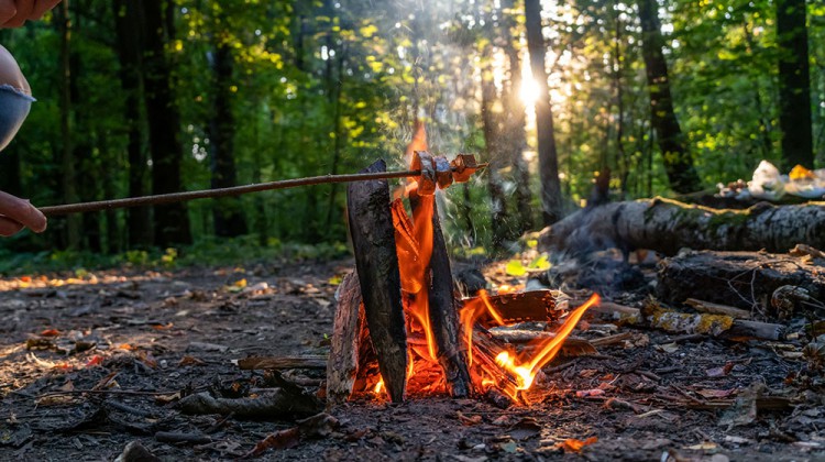 Wintergrillen mit Waldspeck am offenen Feuer.